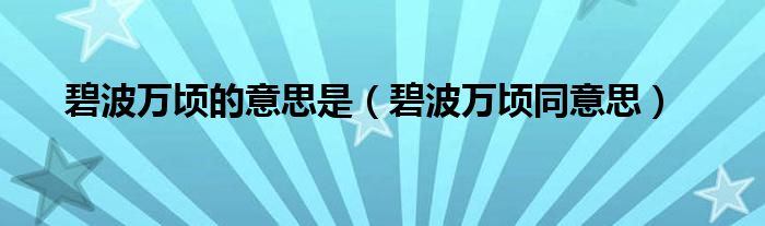 大家好,小育來為大家講解下。碧波萬頃的意思是,碧波萬頃同意思很多人還不知道,現(xiàn)在讓我們一起來看看吧!