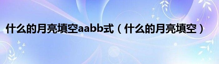 大家好,小育來為大家講解下。什么的月亮填空aabb式,什么的月亮填空很多人還不知道,現(xiàn)在讓我們一起來看看吧!