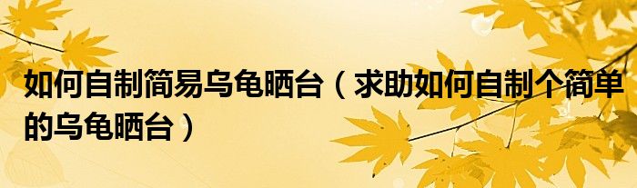 大家好,小育來為大家講解下。如何自制簡易烏龜曬臺,求助如何自制個簡單的烏龜曬臺很多人還不知道,現(xiàn)在讓我們一起來看看吧!