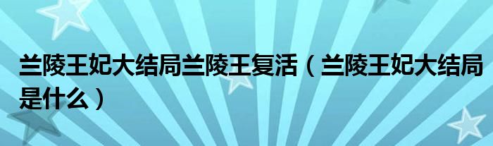 大家好,小育來為大家講解下。蘭陵王妃大結局蘭陵王復活,蘭陵王妃大結局是什么很多人還不知道,現(xiàn)在讓我們一起來看看吧!