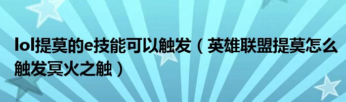 大家好,小育來為大家講解下。lol提莫的e技能可以觸發(fā),英雄聯(lián)盟提莫怎么觸發(fā)冥火之觸很多人還不知道,現(xiàn)在讓我們一起來看看吧!