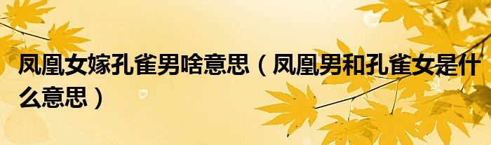 大家好,小育來為大家講解下。鳳凰女嫁孔雀男啥意思,鳳凰男和孔雀女是什么意思很多人還不知道,現(xiàn)在讓我們一起來看看吧!
