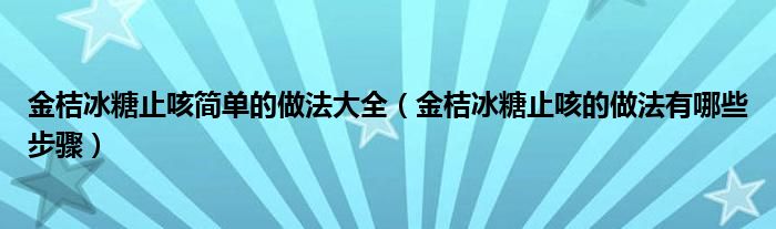 大家好,小育來為大家講解下。金桔冰糖止咳簡單的做法大全,金桔冰糖止咳的做法有哪些步驟很多人還不知道,現(xiàn)在讓我們一起來看看吧!
