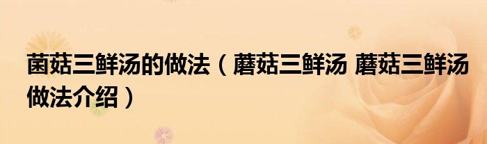 大家好,小育來為大家講解下。菌菇三鮮湯的做法,蘑菇三鮮湯 蘑菇三鮮湯做法介紹很多人還不知道,現(xiàn)在讓我們一起來看看吧!