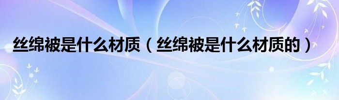 大家好,小育來(lái)為大家講解下。絲綿被是什么材質(zhì),絲綿被是什么材質(zhì)的很多人還不知道,現(xiàn)在讓我們一起來(lái)看看吧!