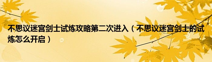 摘要大家好,小育來為大家講解下。不思議迷宮劍士試煉攻略第二次進入,不思議迷宮劍士的試煉怎么開啟很多人還不知道,現(xiàn)在讓我們一起來看看吧!