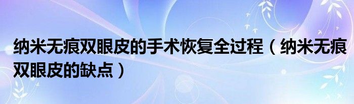 摘要大家好,知識(shí)小編來為大家解答以上的問題。納米無痕雙眼皮的手術(shù)恢復(fù)全過程,納米無痕雙眼皮的缺點(diǎn)很多人還不知道,現(xiàn)在讓我們一起來看看吧
