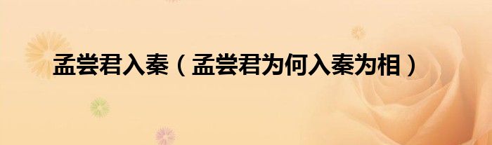 大家好,小育來為大家講解下。孟嘗君入秦,孟嘗君為何入秦為相很多人還不知道,現(xiàn)在讓我們一起來看看吧!