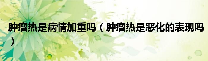 大家好,知識小編來為大家解答以上的問題。腫瘤熱是病情加重嗎,腫瘤熱是惡化的表現(xiàn)嗎很多人還不知道,現(xiàn)在讓我們一起來看看吧!