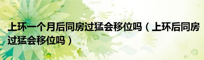 大家好,知識小編來為大家解答以上的問題。上環(huán)一個月后同房過猛會移位嗎,上環(huán)后同房過猛會移位嗎很多人還不知道,現(xiàn)在讓我們一起來看看吧!