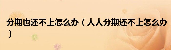 摘要大家好,小育來為大家講解下。分期也還不上怎么辦,人人分期還不上怎么辦很多人還不知道,現(xiàn)在讓我們一起來看看吧!1、當(dāng)大家都無法分期付
