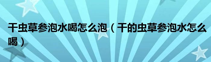 大家好,小育來(lái)為大家講解下。干蟲(chóng)草參泡水喝怎么泡,干的蟲(chóng)草參泡水怎么喝很多人還不知道,現(xiàn)在讓我們一起來(lái)看看吧!