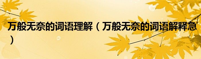 大家好,小育來為大家講解下。萬般無奈的詞語理解,萬般無奈的詞語解釋急很多人還不知道,現(xiàn)在讓我們一起來看看吧!