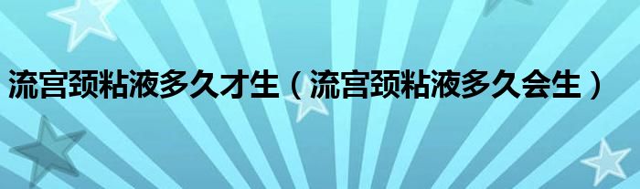 大家好,知識(shí)小編來(lái)為大家解答以上的問(wèn)題。流宮頸粘液多久才生,流宮頸粘液多久會(huì)生很多人還不知道,現(xiàn)在讓我們一起來(lái)看看吧!