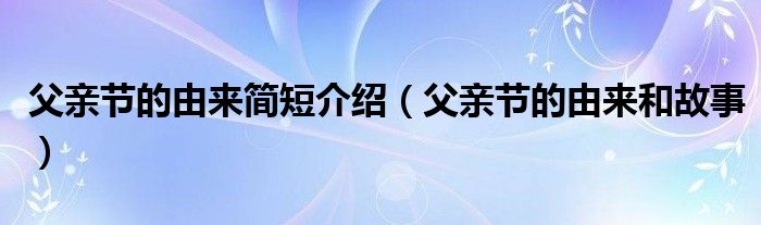 摘要大家好,小育來為大家講解下。父親節(jié)的由來簡短介紹,父親節(jié)的由來和故事很多人還不知道,現(xiàn)在讓我們一起來看看吧!1、父親節(jié)起源于美國。