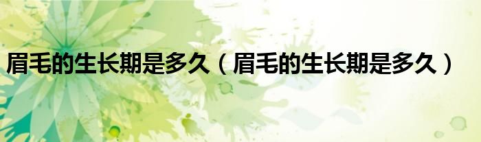 大家好,知識(shí)小編來(lái)為大家解答以上的問(wèn)題。眉毛的生長(zhǎng)期是多久,眉毛的生長(zhǎng)期是多久很多人還不知道,現(xiàn)在讓我們一起來(lái)看看吧!