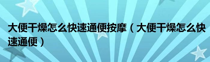大家好,知識小編來為大家解答以上的問題。大便干燥怎么快速通便按摩,大便干燥怎么快速通便很多人還不知道,現(xiàn)在讓我們一起來看看吧!