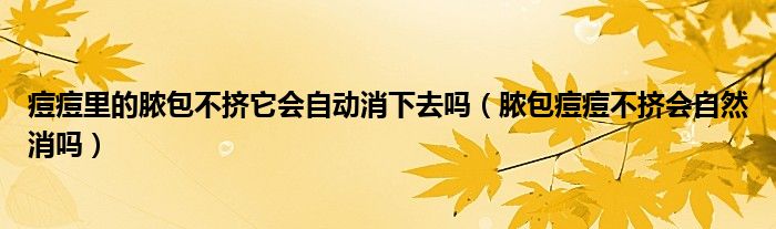 大家好,知識(shí)小編來(lái)為大家解答以上的問(wèn)題。痘痘里的膿包不擠它會(huì)自動(dòng)消下去嗎,膿包痘痘不擠會(huì)自然消嗎很多人還不知道,現(xiàn)在讓我們一起來(lái)看看吧!