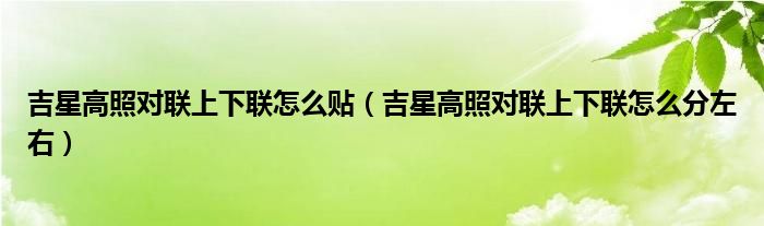 大家好,小育來為大家講解下。吉星高照對聯(lián)上下聯(lián)怎么貼,吉星高照對聯(lián)上下聯(lián)怎么分左右很多人還不知道,現(xiàn)在讓我們一起來看看吧!