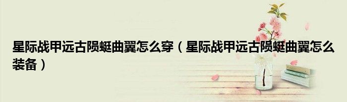 大家好,小育來為大家講解下。星際戰(zhàn)甲遠(yuǎn)古隕蜓曲翼怎么穿,星際戰(zhàn)甲遠(yuǎn)古隕蜓曲翼怎么裝備很多人還不知道,現(xiàn)在讓我們一起來看看吧!