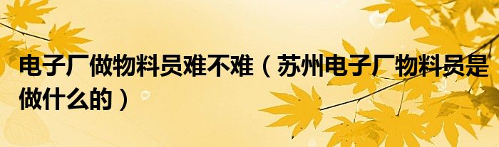 摘要大家好,小育來為大家講解下。電子廠做物料員難不難,蘇州電子廠物料員是做什么的很多人還不知道,現(xiàn)在讓我們一起來看看吧!1、蘇州電子廠