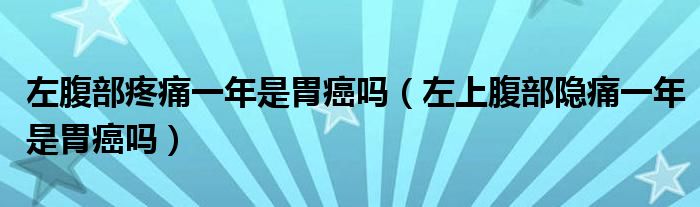 大家好,知識小編來為大家解答以上的問題。左腹部疼痛一年是胃癌嗎,左上腹部隱痛一年是胃癌嗎很多人還不知道,現(xiàn)在讓我們一起來看看吧!