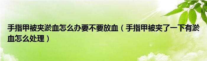 大家好,知識(shí)小編來(lái)為大家解答以上的問(wèn)題。手指甲被夾淤血怎么辦要不要放血,手指甲被夾了一下有淤血怎么處理很多人還不知道,現(xiàn)在讓我們一起來(lái)看看吧!