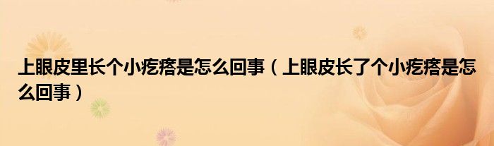 摘要大家好,知識(shí)小編來(lái)為大家解答以上的問(wèn)題。上眼皮里長(zhǎng)個(gè)小疙瘩是怎么回事,上眼皮長(zhǎng)了個(gè)小疙瘩是怎么回事很多人還不知道,現(xiàn)在讓我們一起來(lái)