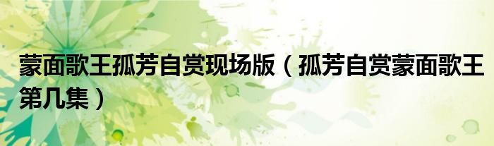 大家好,小育來為大家講解下。蒙面歌王孤芳自賞現(xiàn)場(chǎng)版,孤芳自賞蒙面歌王第幾集很多人還不知道,現(xiàn)在讓我們一起來看看吧!