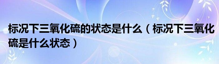 大家好,小育來為大家講解下。標況下三氧化硫的狀態(tài)是什么,標況下三氧化硫是什么狀態(tài)很多人還不知道,現(xiàn)在讓我們一起來看看吧!