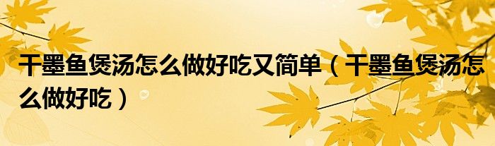 摘要大家好,小育來為大家講解下。干墨魚煲湯怎么做好吃又簡單,干墨魚煲湯怎么做好吃很多人還不知道,現(xiàn)在讓我們一起來看看吧!1、配料:豬骨