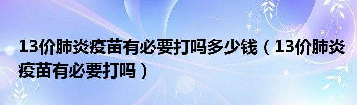 摘要大家好,知識小編來為大家解答以上的問題。13價肺炎疫苗有必要打嗎多少錢,13價肺炎疫苗有必要打嗎很多人還不知道,現(xiàn)在讓我們一起來看看吧