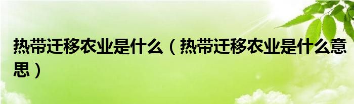 大家好,小育來為大家講解下。熱帶遷移農(nóng)業(yè)是什么,熱帶遷移農(nóng)業(yè)是什么意思很多人還不知道,現(xiàn)在讓我們一起來看看吧!