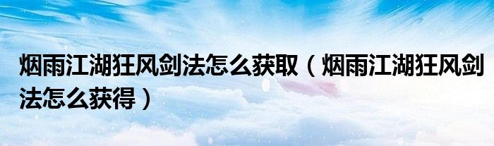 摘要大家好,小育來為大家講解下。煙雨江湖狂風劍法怎么獲取,煙雨江湖狂風劍法怎么獲得很多人還不知道,現(xiàn)在讓我們一起來看看吧!1、玩家需要
