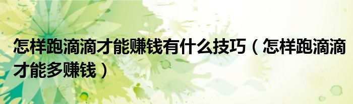 大家好,小育來為大家講解下。怎樣跑滴滴才能賺錢有什么技巧,怎樣跑滴滴才能多賺錢很多人還不知道,現(xiàn)在讓我們一起來看看吧!