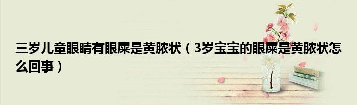 大家好,知識(shí)小編來(lái)為大家解答以上的問(wèn)題。三歲兒童眼睛有眼屎是黃膿狀,3歲寶寶的眼屎是黃膿狀怎么回事很多人還不知道,現(xiàn)在讓我們一起來(lái)看看吧!