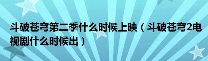 大家好,小育來為大家講解下。斗破蒼穹第二季什么時候上映,斗破蒼穹2電視劇什么時候出很多人還不知道,現(xiàn)在讓我們一起來看看吧!