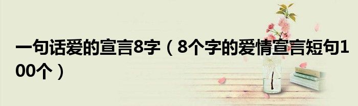 大家好,小育來(lái)為大家講解下。一句話愛(ài)的宣言8字,8個(gè)字的愛(ài)情宣言短句100個(gè)很多人還不知道,現(xiàn)在讓我們一起來(lái)看看吧!