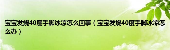 大家好,知識小編來為大家解答以上的問題。寶寶發(fā)燒40度手腳冰涼怎么回事,寶寶發(fā)燒40度手腳冰涼怎么辦很多人還不知道,現(xiàn)在讓我們一起來看看吧!
