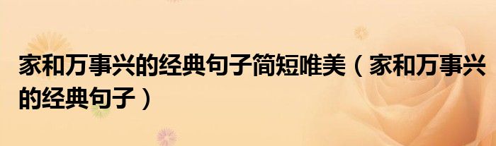 大家好,小育來為大家講解下。家和萬事興的經(jīng)典句子簡短唯美,家和萬事興的經(jīng)典句子很多人還不知道,現(xiàn)在讓我們一起來看看吧!