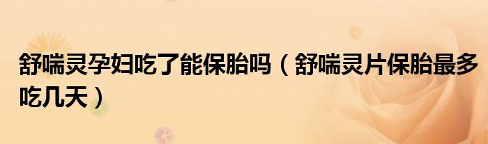 大家好,知識(shí)小編來(lái)為大家解答以上的問(wèn)題。舒喘靈孕婦吃了能保胎嗎,舒喘靈片保胎最多吃幾天很多人還不知道,現(xiàn)在讓我們一起來(lái)看看吧!