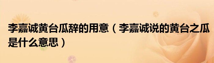 大家好,小育來為大家講解下。李嘉誠黃臺瓜辭的用意,李嘉誠說的黃臺之瓜是什么意思很多人還不知道,現(xiàn)在讓我們一起來看看吧!