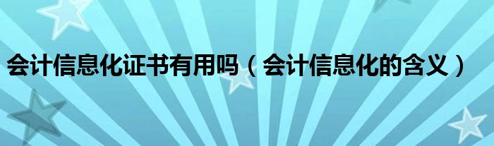 大家好,小育來為大家講解下。會(huì)計(jì)信息化證書有用嗎,會(huì)計(jì)信息化的含義很多人還不知道,現(xiàn)在讓我們一起來看看吧!