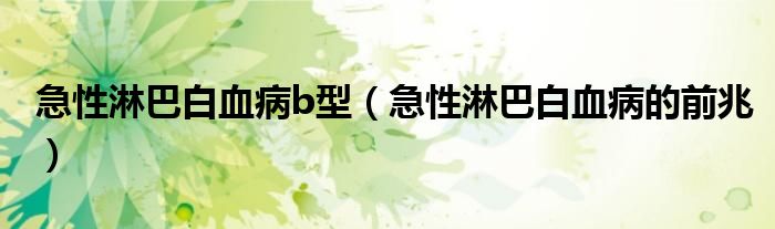 大家好,知識(shí)小編來(lái)為大家解答以上的問(wèn)題。急性淋巴白血病b型,急性淋巴白血病的前兆很多人還不知道,現(xiàn)在讓我們一起來(lái)看看吧!