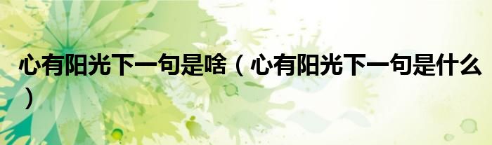 大家好,小育來為大家講解下。心有陽光下一句是啥,心有陽光下一句是什么很多人還不知道,現(xiàn)在讓我們一起來看看吧!