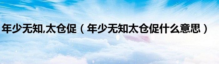 大家好,小育來為大家講解下。年少無知,太倉(cāng)促,年少無知太倉(cāng)促什么意思很多人還不知道,現(xiàn)在讓我們一起來看看吧!