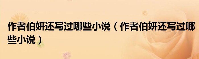 大家好,小育來為大家講解下。作者伯妍還寫過哪些小說,作者伯妍還寫過哪些小說很多人還不知道,現(xiàn)在讓我們一起來看看吧!