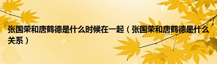 摘要大家好,小育來為大家講解下。張國榮和唐鶴德是什么時(shí)候在一起,張國榮和唐鶴德是什么關(guān)系很多人還不知道,現(xiàn)在讓我們一起來看看吧!1、張
