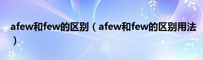 大家好,小育來為大家講解下。afew和few的區(qū)別,afew和few的區(qū)別用法很多人還不知道,現(xiàn)在讓我們一起來看看吧!