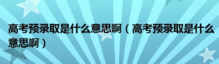 大家好,小育來為大家講解下。高考預(yù)錄取是什么意思啊,高考預(yù)錄取是什么意思啊很多人還不知道,現(xiàn)在讓我們一起來看看吧!